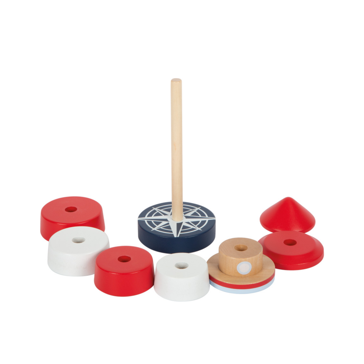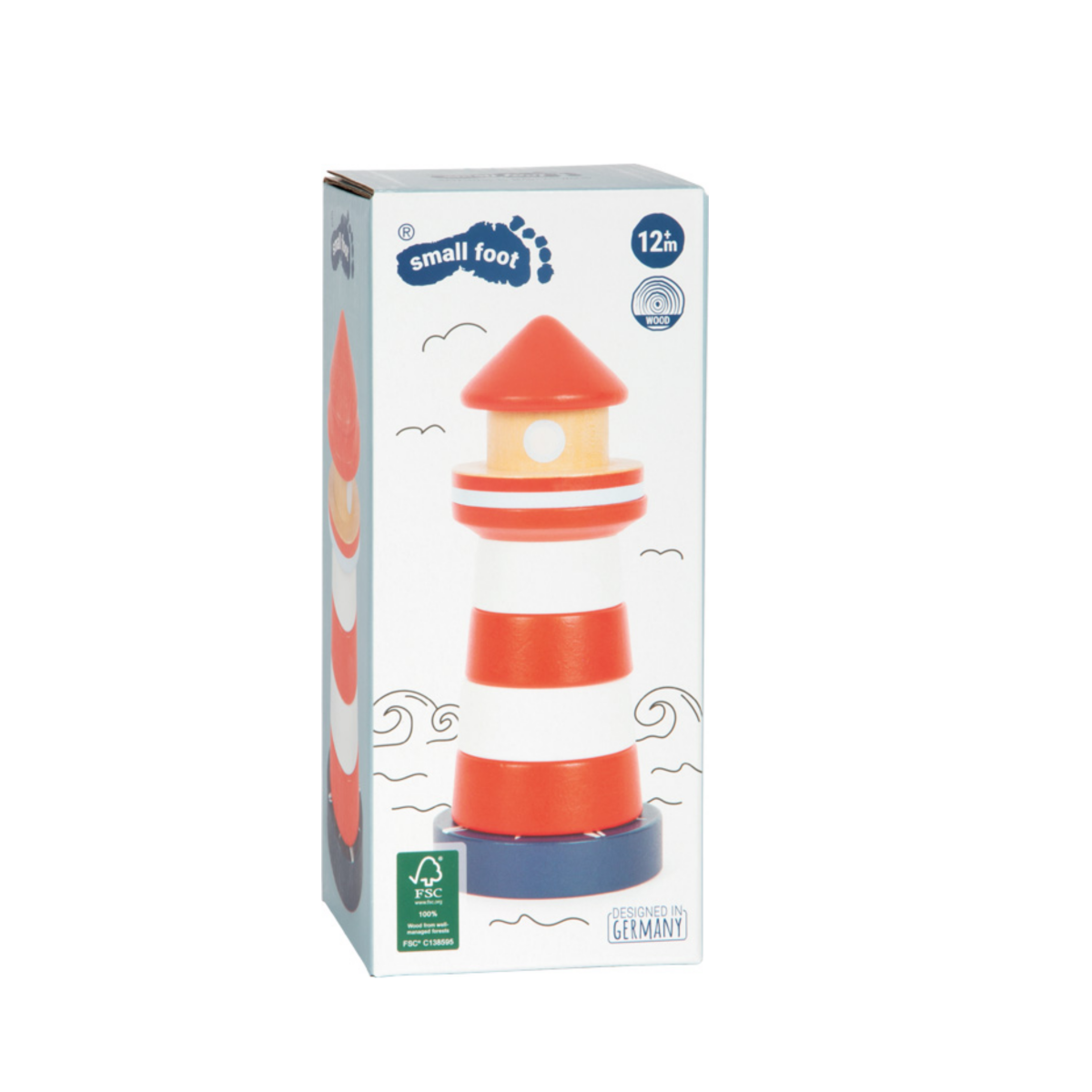 Contrairement aux tours à anneaux ronds, le phare Grand Océan propose une silhouette haute et fine (Ø 8,5 × 21 cm) qui s’impose autant comme jouet d’éveil que comme pièce décorative dans une chambre à l’univers maritime. La marque allemande Legler fabrique ce jouet en bois certifié FSC® 100% : toutes les essences utilisées sont issues de forêts gérées de façon responsable. Un pin flexible central assure la sécurité dès les premières manipulations. Le jouet est conseillé dès 12 mois.