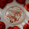 Q1 — Comment le prénom est-il intégré à la couronne tigre ? Le prénom est découpé directement dans le bois de tilleul au laser, avec une typographie dont les lettres sont connectées les unes aux autres. Ces lettres sont reliées structurellement à l’anneau de la couronne — le prénom ne tient pas par de la colle ou un insert : il fait partie du bois lui-même. Chaque couronne est donc une pièce d’un seul tenant, fabriquée spécialement pour le prénom indiqué.
