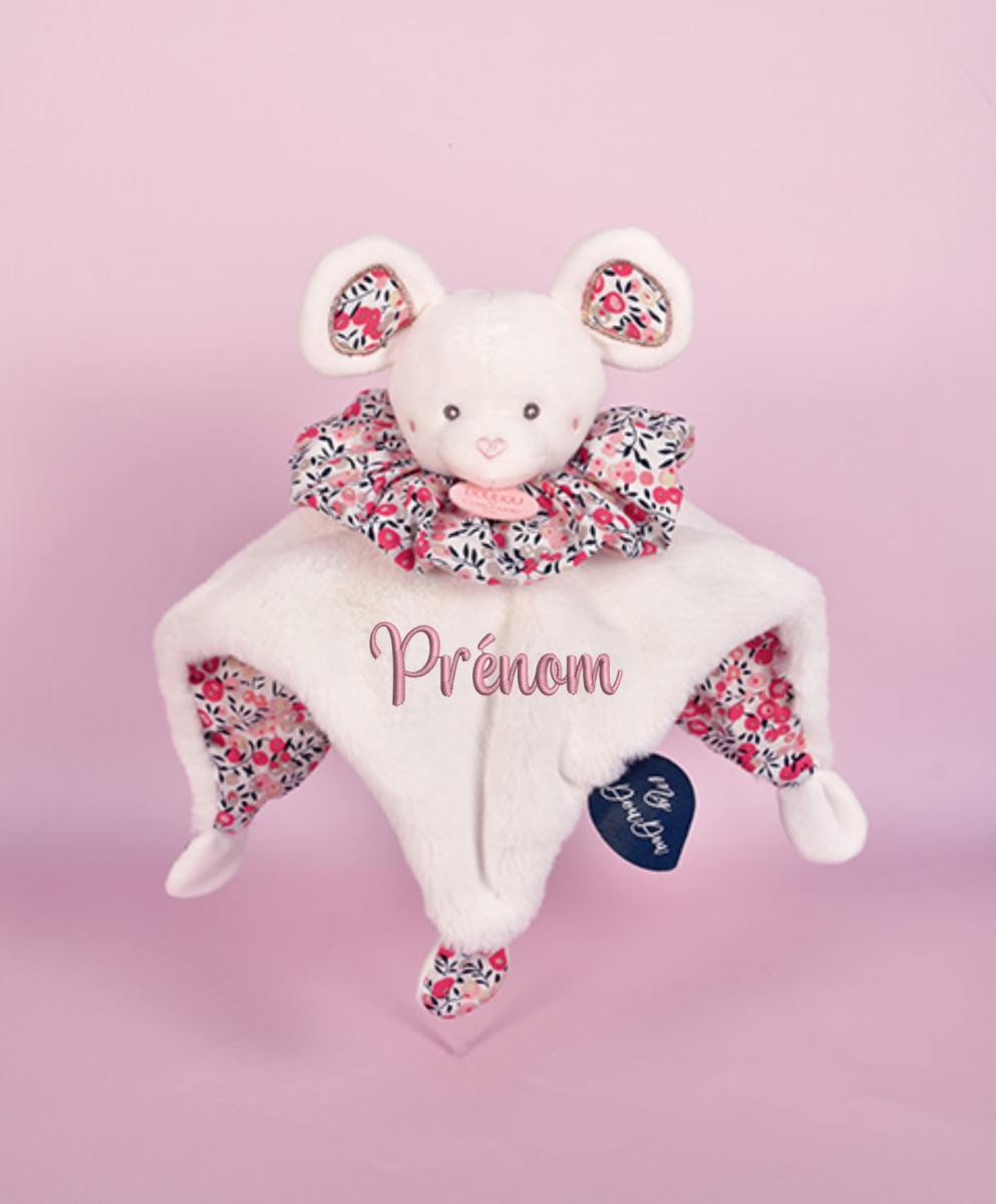 Pour qui et quand offrir le Doudou Boule Souris blanche brodé ?