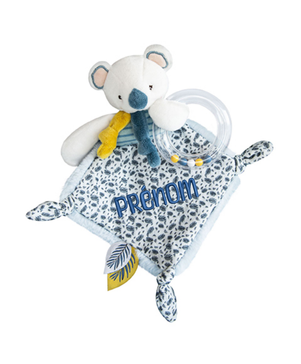 Pour un coffret naissance complet dans l’univers koala, associez Yoca au Doudou Boule Koala gris (DC3934, 34,80 €, même animal en format 3-en-1) — deux compagnons koala brodés au même prénom, un pour la maison et un pour les sorties. Retrouvez également notre sélection de doudous et peluches personnalisés et de jouets en bois personnalisés pour composer un cadeau de naissance complet.