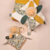 L’imprimé qui orne ce doudou n’est pas un motif générique — il a été créé exclusivement par les stylistes de Doudou & Compagnie pour la Collection Boh’aime. Sa palette aux tons chauds et dorés, typiques de l’univers savane, lui confère une identité visuelle immédiatement reconnaissable. C’est le niveau d’attention au design et aux couleurs qui distingue la gamme Boh’aime des doudous ordinaires, et qui en fait un objet que l’on remarque, que l’on conserve, que l’on expose dans la chambre de l’enfant.