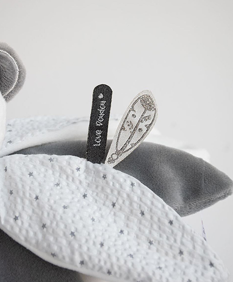 Le camaïeu de gris et les paillettes argent : le doudou le plus élégant de la sélection