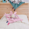 Le Doudou Lapin Rose séduit au premier regard. Ses tonalités roses douces, sa collerette fleurie délicate et sa frimousse de lapin attendrissante en font le doudou plat idéal pour une petite fille ou pour toute chambre aux teintes roses, crème ou lilas. Mais ce qui distingue vraiment ce lapin des autres doudous roses du marché, c’est la richesse de sa conception : différentes matières, nouettes et étiquettes à manipuler, textures variées qui stimulent les sens de bébé dès la naissance. Un doudou qui n’est pas seulement joli — il est aussi conçu pour accompagner l’éveil.