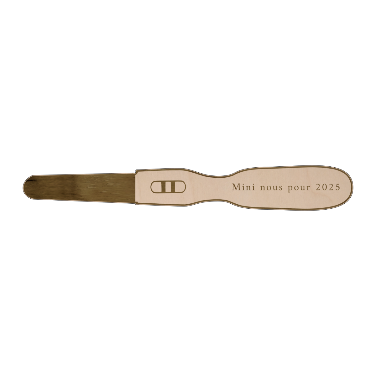 Ce test de grossesse est conçu et fabriqué de A à Z dans notre atelier de Laigné-en-Belin, en Sarthe. Nous utilisons du bois de tilleul 3mm, une matière au grain fin qui restitue fidèlement la précision de la gravure laser. Chaque pièce est contrôlée avant expédition — aucun intermédiaire, aucune fabrication délocalisée.