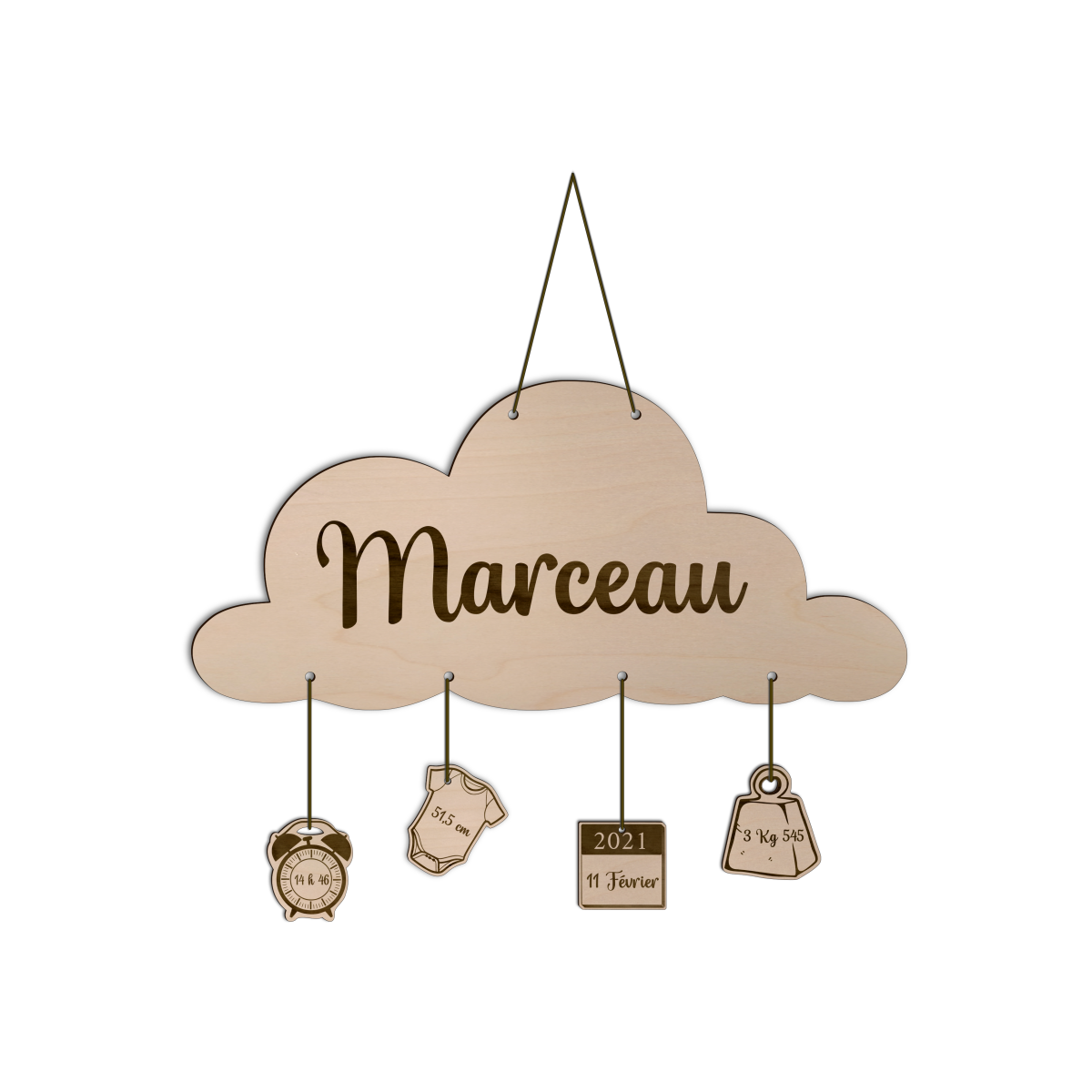 ✨ Suspension naissance nuage, gravé avec amour directement dans notre atelier. Un cadeau de naissance inoubliable pour marquer les grands moments de la vie. Personnalisé avec le prénom de votre choix, il devient un souvenir unique et précieux, à offrir ou à chérir pour toujours. 💛